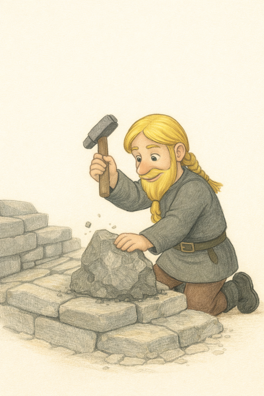 Knut is still shaping the stones.